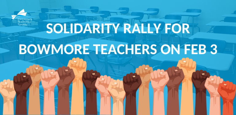 On Tuesday, February 3, 2026 beginning at 4:30 pm, ETT will be holding a solidarity rally at the TDSB Office (5050 Yonge Street, Toronto) in support of the teachers at Bowmore […]