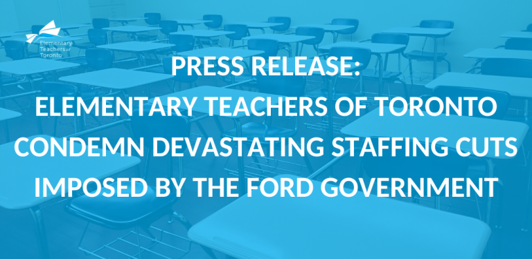 Press Release: Elementary Teachers of Toronto Condemn Devastating Staffing Cuts Imposed by the Ford Government
